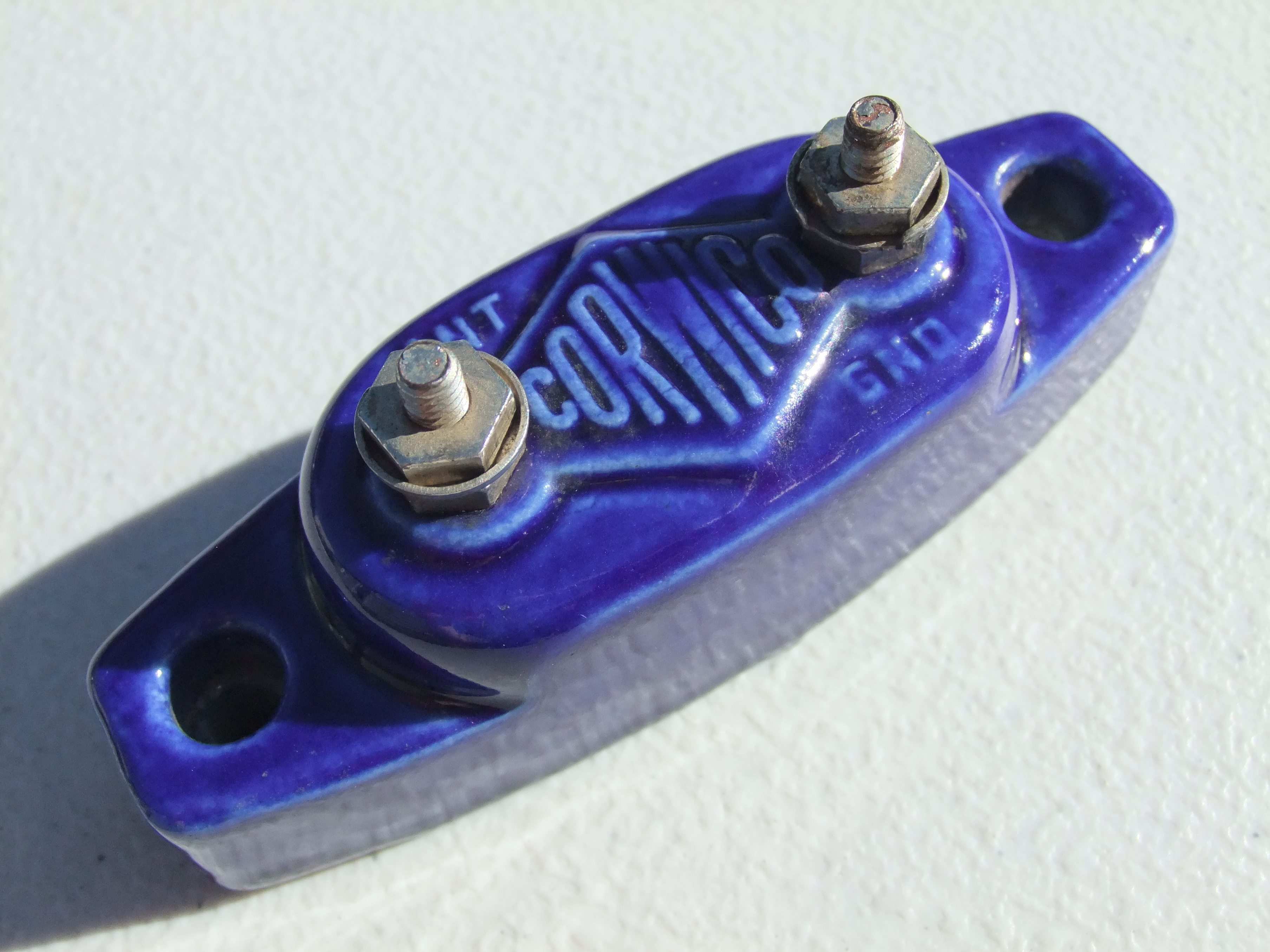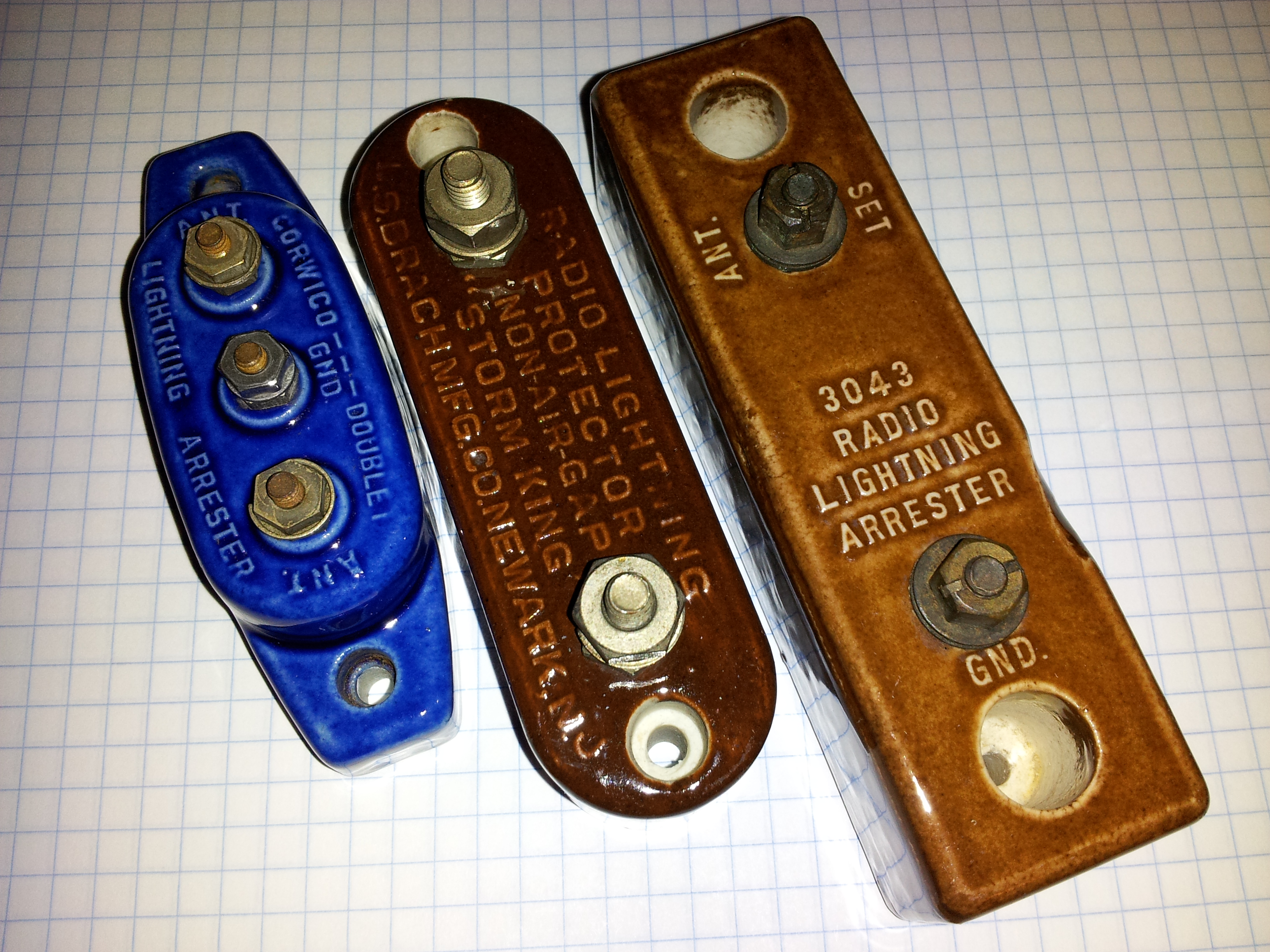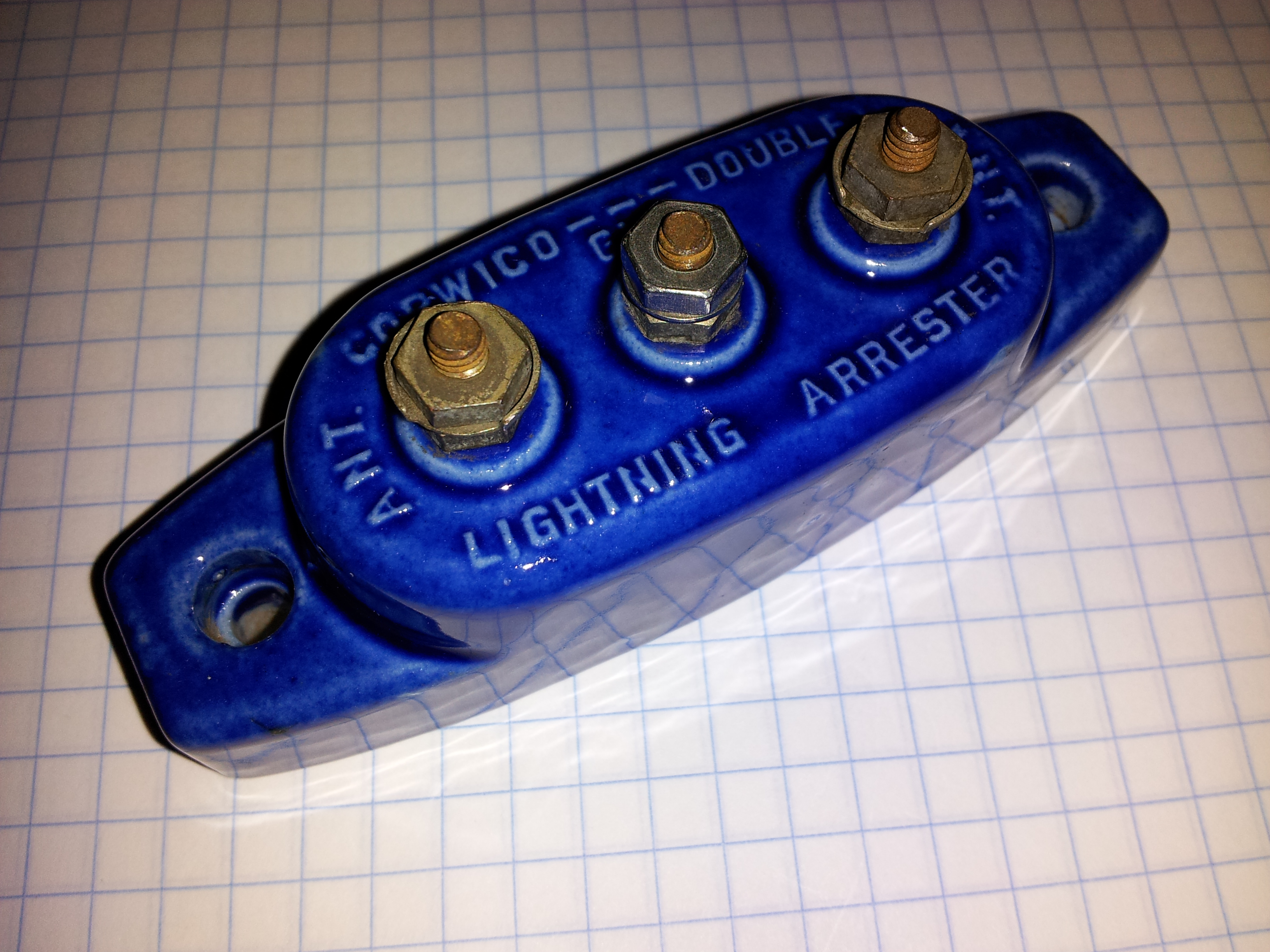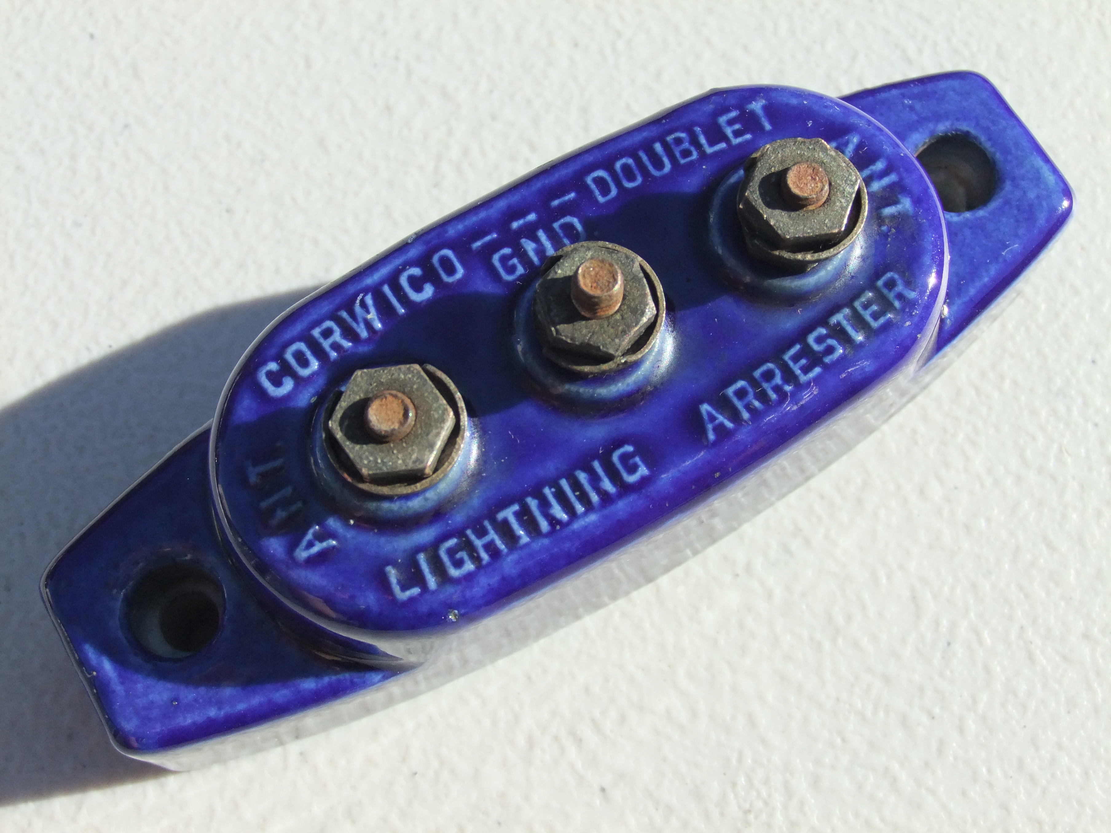 Corwico --- Doublet Lightning Arrester ANT. GND. ANT. (top) embossed, 827 (bottom) embossed |